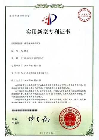 滴水試驗(yàn)裝置-實(shí)用新型專(zhuān)利證書(shū)【岳信公司】
