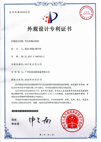氣壓檢漏試驗(yàn)機(jī)-外觀專(zhuān)利證書(shū)【岳信公司】